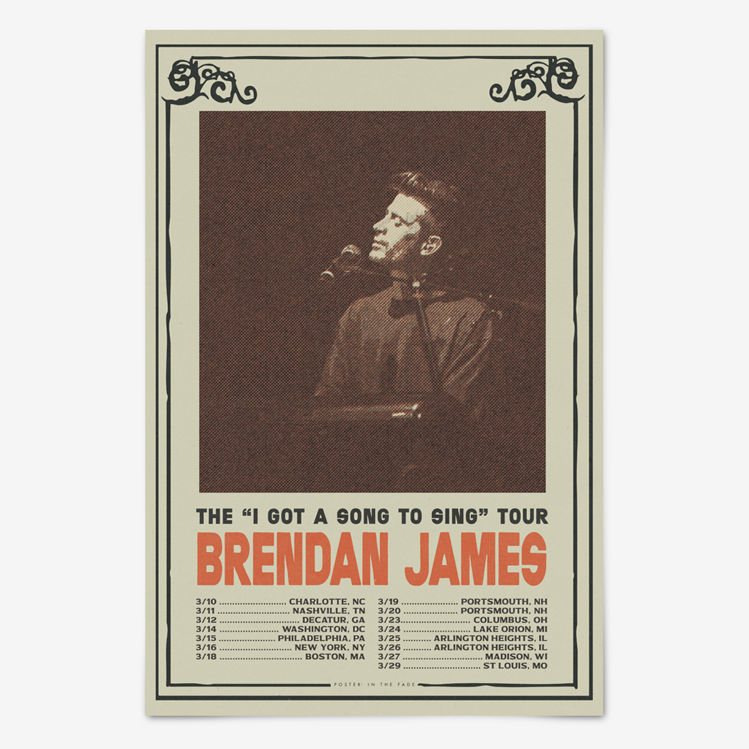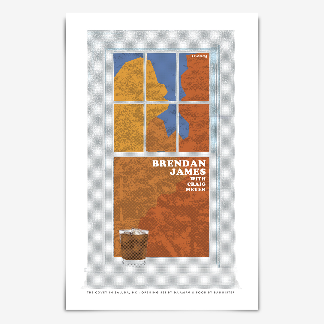 Brendan James is a very talented piano-based singer-wongwriter who I’ve been lucky enough to meet a few times through some mutual friends. Long story short, I offered up a poster to commemorate a house show he des annually for some friends in the western NC mountains (below) and he liked it enough to ask me to design his Sprint ’26 poster (left). Cool to collaborate with another creative type and share thoughts and ideas.